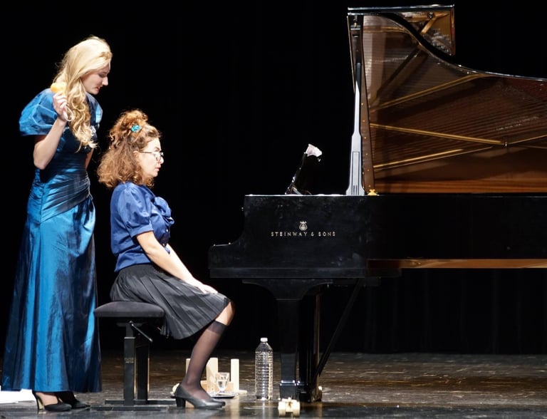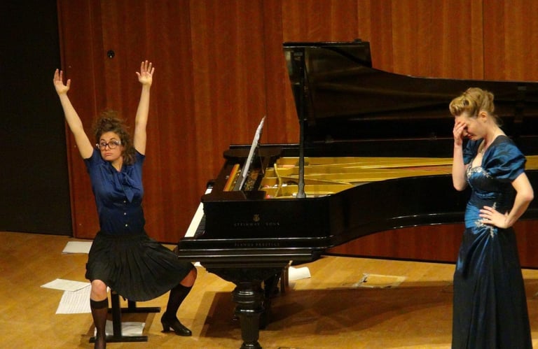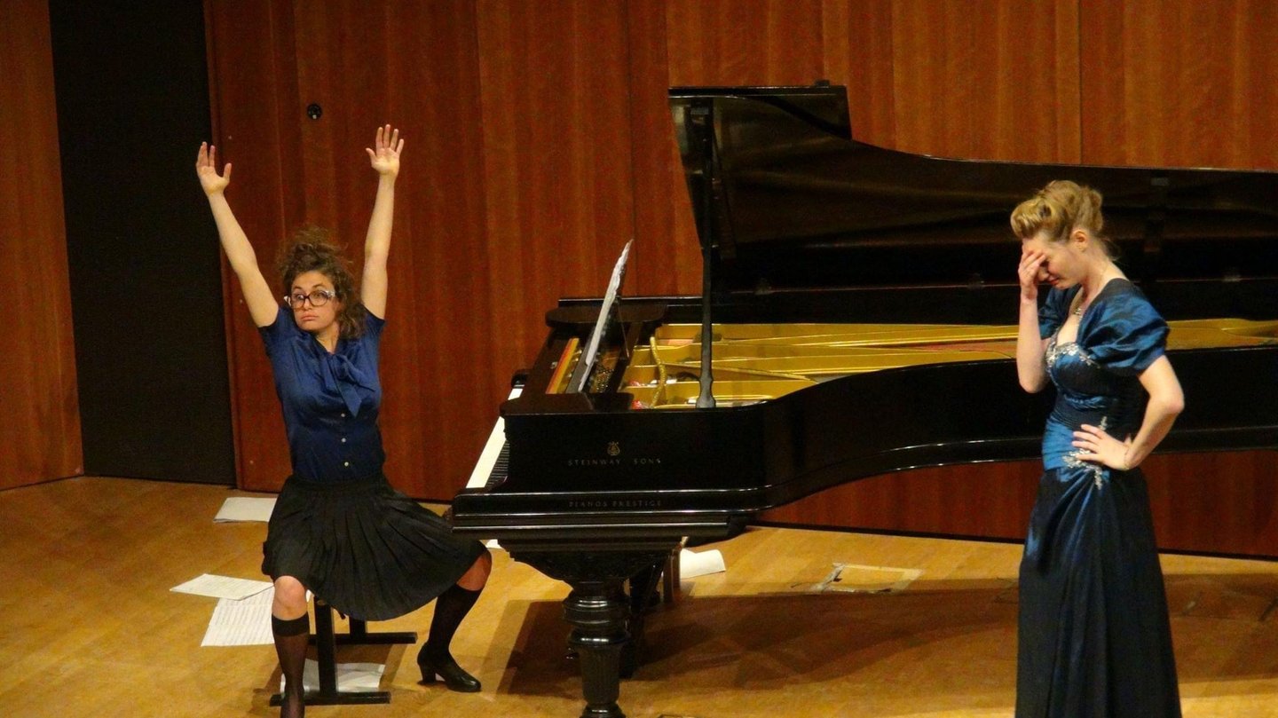 Dans une atmosphère de cabaret, une chanteuse quelque peu diva et sa pianiste un brin fantasque explorent toujours plus loin l’inextricable lien entre théâtre et musique, mais aussi la frontière entre réalité et fiction. Francis Poulenc, Kurt Weill, Eric Satie et bien d’autres se retrouvent soudain les cobayes de nos deux interprètes, qui nous entraînent avec sensibilité et humour dans les méandres de leur duo explosif.